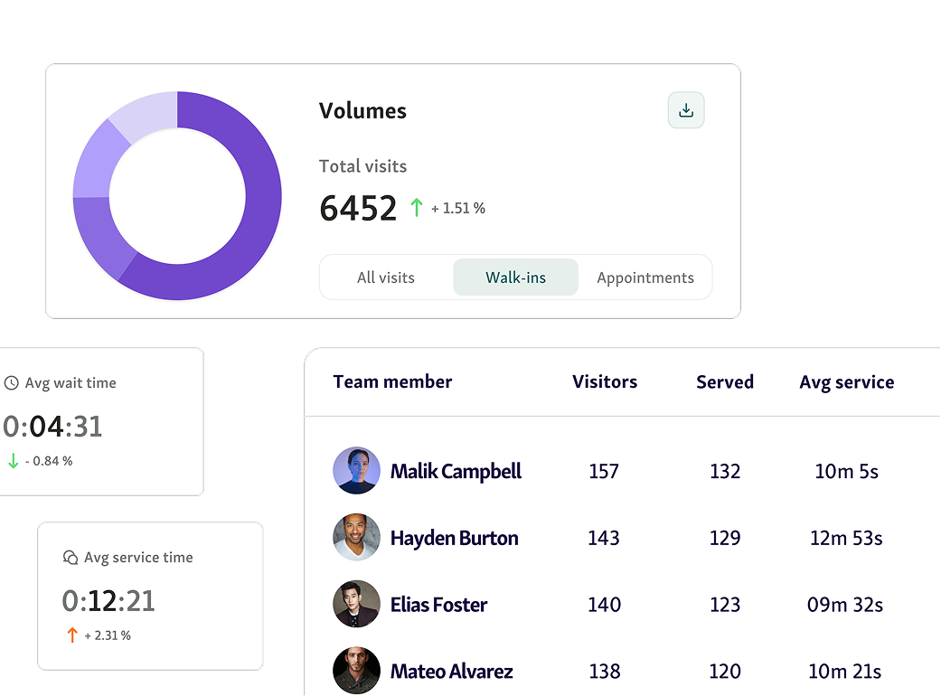 With Qminder, all data is collected digitally, so managers can track wait times, service times, and no-show rates in real time, compare performance across sites, and make informed decisions about staffing and operations.